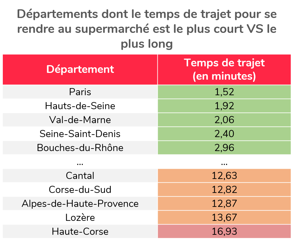 Le consommateur n’est pas enclin à faire de nombreux kilomètres pour se rendre au magasin. En l’occurrence, le temps de trajet moyen en voiture en France est de 6,92 minutes pour se rendre en supermarché.